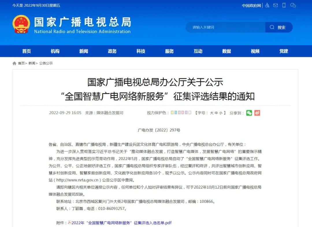 為進一步深入貫徹落實習近平總書記關于“推動媒體融合發展,打造智慧廣電媒體,發展智慧廣電網絡”的重要指示精神,充分發揮先進典型的示范帶動作用,2022年5月,國家廣播電視總局啟動“全國智慧廣電網絡新服務”征集評選工作。
