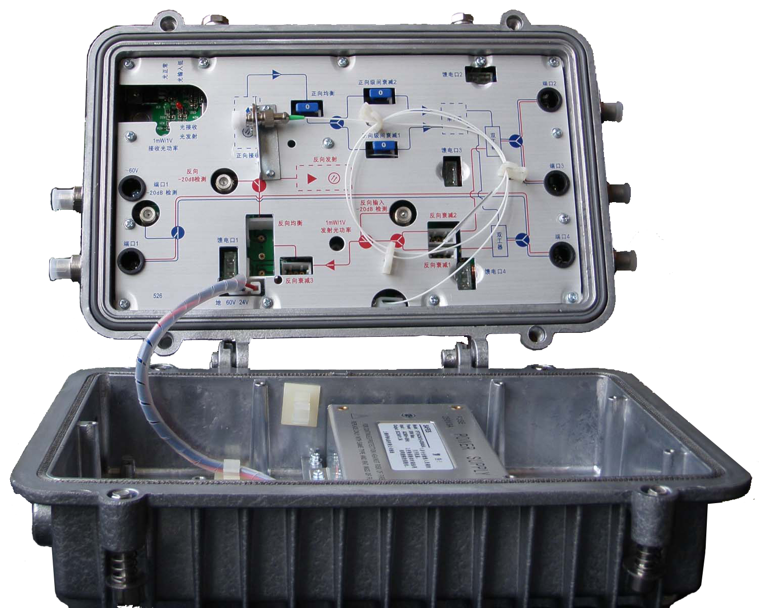 Overview        TON6800A optical node can be used in CATV network, digital network and telecommunication network.the optical node adopts high-performance, high-efficiently optical detector, RF amplifer stage use high-quality GaAs amplifier module, high reliability, low power consumpotion,low noise and high output level.